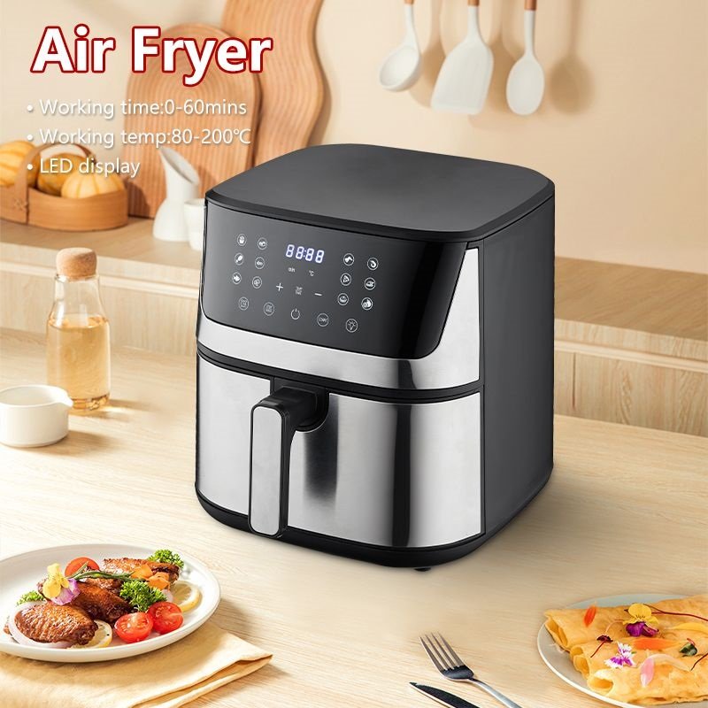 The CONDERE AF-2506 Air Fryer is a 6.5L large-capacity compact air fryer designed for both personal and family use. With a powerful 1600W heating system and a voltage range of 220V-240V 50HZ/60HZ, it offers an adjustable temperature range of 80-200℃ to accommodate various cooking needs, ensuring crispy and delicious results in less time. This small air fryer features a smart LED digital display for easy operation and a 0-60 minute timer for precise cooking control. The advanced hot air circulation technology enables oil-free frying, providing a healthier way to enjoy your favorite dishes. The non-stick interior makes cleaning effortless, making it an ideal mini air fryer for everyday use. The compact air fryer has a product size of 298X382X314mm and is manufactured in China. It comes with a 12-month warranty for added assurance. The package includes the air fryer, main unit, protective foam, and user manual. Whether you need a small air fryer, mini air fryer, or portable air fryer, the CONDERE AF-2506 is the perfect choice for convenient and healthy cooking.