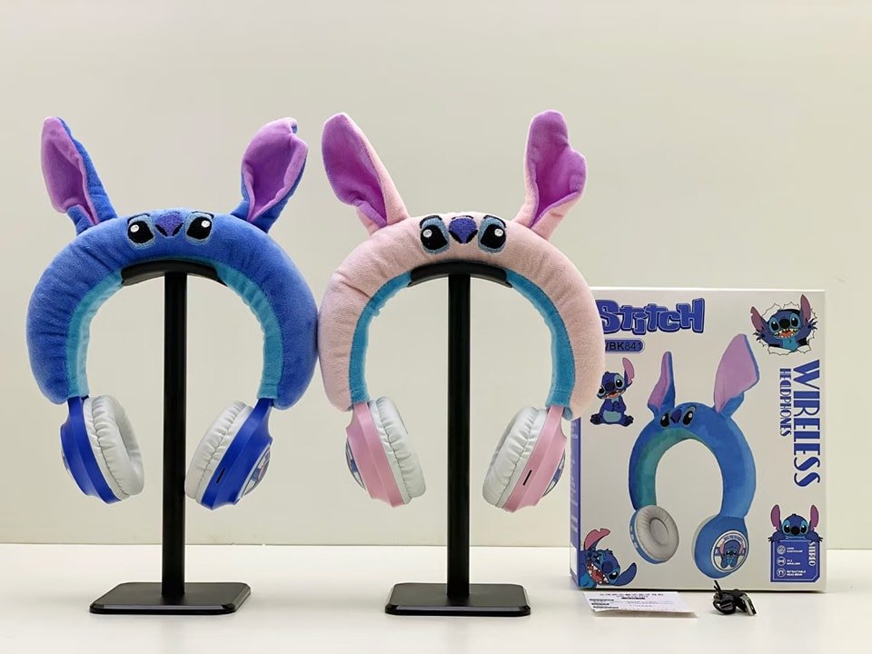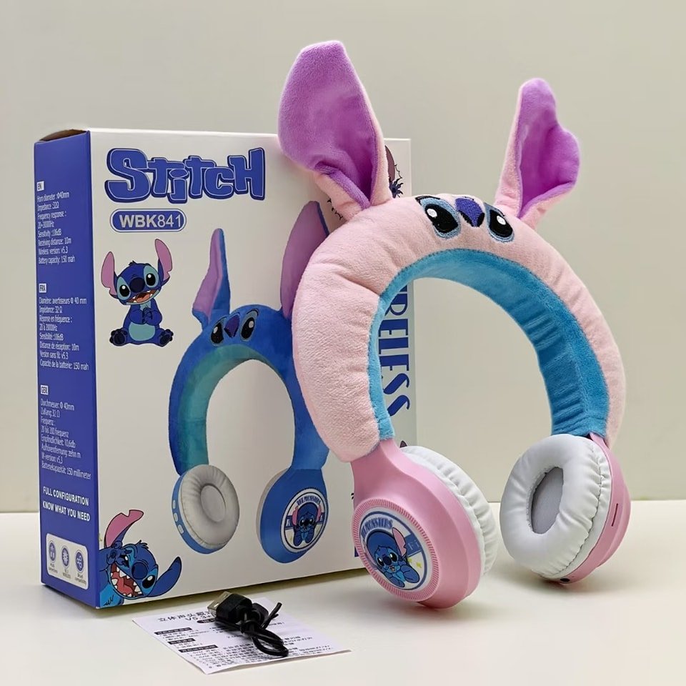 Disney WBK841 Stitch Bluetooth Headphones HIFI Stereo Sound Plush Wireless Bluetooth Earphones