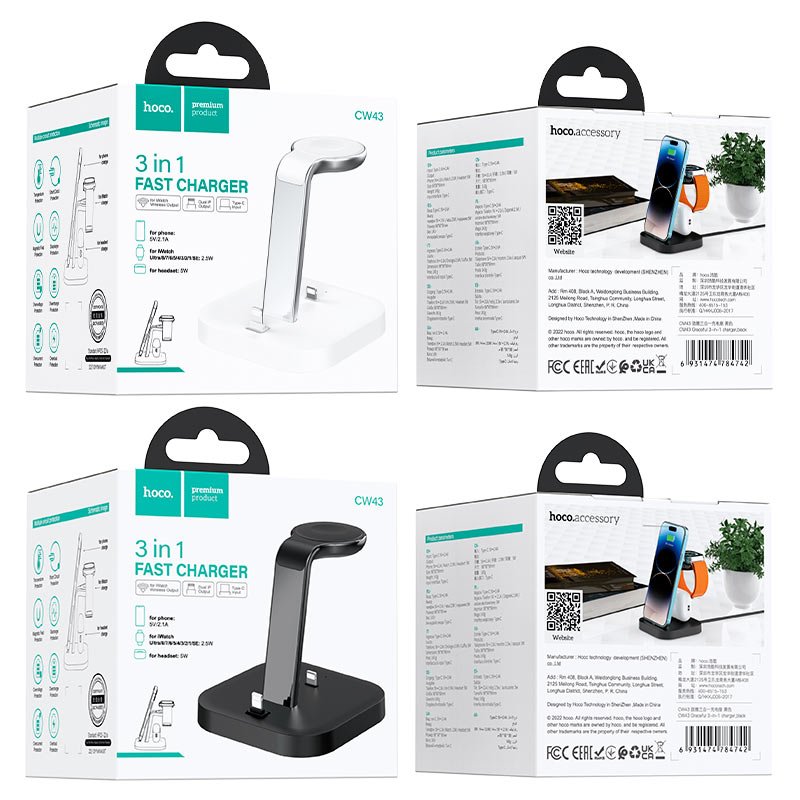 CW43 Graceful, wireless charger, 5V / 2.1A output for Lightning, 5W output for headset and 2.5W wireless output for smartwatch