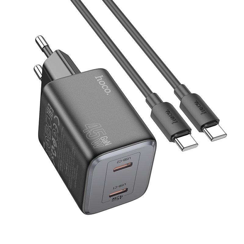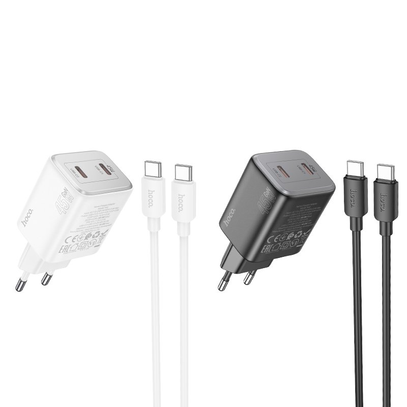 HOCO 2XUSB-C 45W Charger with Type-C to Type-C Cable – Black