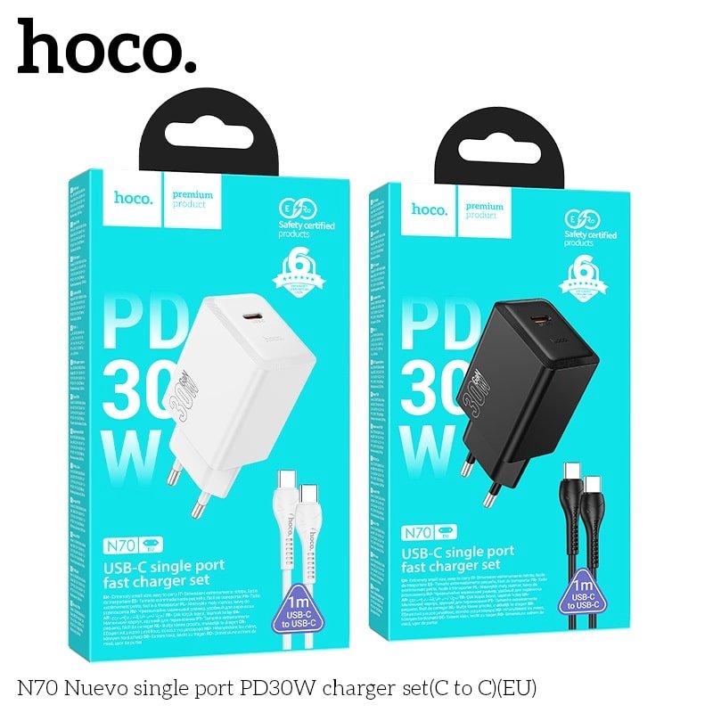 Hoco N70 Single Port PD30W Type-C to Type-C Â Charger set with 1m 60W Type-C to Type-C Data Cable (Black)