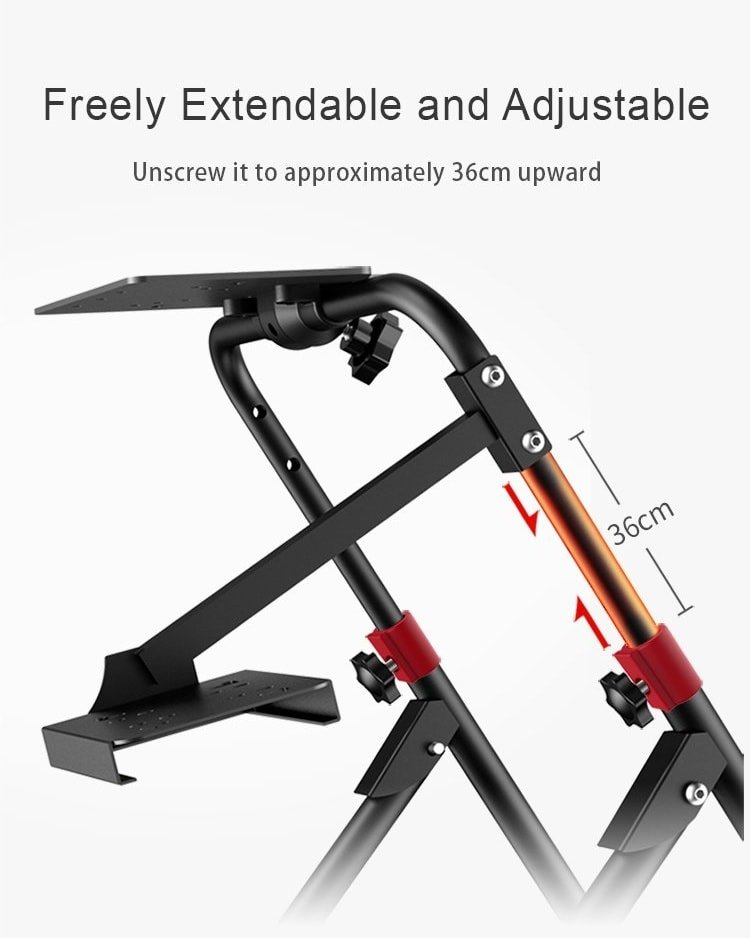 • The steering wheel stand can freely adjust the height of the stand according to your height (unscrew the knob and play with the maximum expansion 36cm) to meet the use of people of various heights,