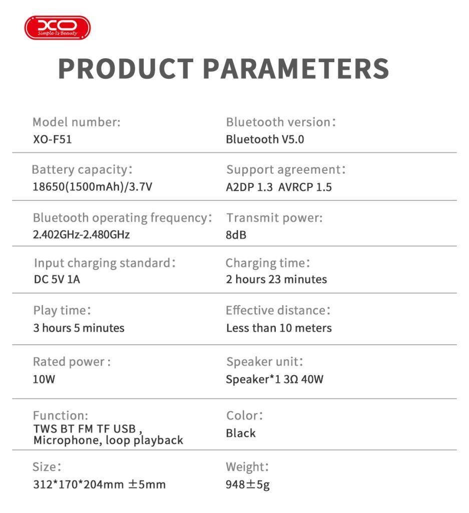 The XO F51 portable speaker will be an excellent choice for those who want to enjoy their favorite music in any conditions.